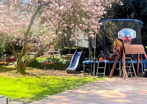 Zur Wohnung gehört ein ca. 275 m² großer Garten, der exklusiv genutzt werden kann und viel Raum für Freizeitaktivitäten bietet.