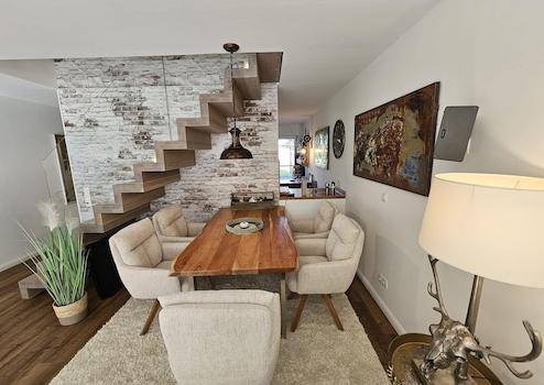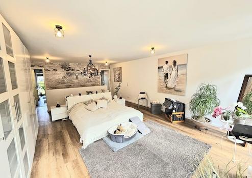 Diese lichtdurchflutete Eigentumswohnung über 2 Etagen bietet Ihnen mit ca. 108 qm Wohnfläche im Reihenhauscharakter ein neues Zuhause für Paare oder eine kleine Familie. Erbaut wurde dieses außergewöhnliche Objekt im Jahre 2001 und befindet sich in einer idyllischen Eigentumswohnanlage mit drei großen Teichen. Alle Zimmer der Wohnung sind mit bodentiefen Fenstern versehen, die für ein helles und freundliches Raumgefühl sorgen. Alle Fenster sind mit Plissees und Insektenschutz ausgestattet. In der gesamten Wohnung ist eine Fußbodenheizung. Die hochwertige Einbauküche verbindet sich mit dem Wohn- und Essbereich. Eine Kombination aus weißem Hochglanz in Verbindung mit matt-grauen Schränken und Arbeitsplatte und Küchenspiegel in Holzoptik. Das Obergeschoss erreicht man über die beleuchtete, hölzerne Faltwerktreppe mit stilvollem Glasgeländer. Das Loft ähnliche Schlafzimmer im Obergeschoss mit Blick ins Grüne, das bei Bedarf mit wenig Aufwand wieder in zwei separate Zimmer umgewandelt werden kann, sodass in der Wohnung dann wieder 4 Zimmer zur Verfügung stehen, ist hervorzuheben. Das Highlight der Wohnung ist die 40 qm große Südterrasse mit WPC-Boden, stilvoller Beleuchtung, Wasseranschluss, elektrische Markise mit Fernsteuerung und einem kleinen Schuppen. Die Wohnung wurde 2022 umfassend modernisiert. Dabei wurden die Türen und Türzargen, Fußböden, Wasser- und Stromleitungen sowie Netzwerkverkabelung komplett erneuert. Küche / Treppe / Gäste-WC / Bad (Walk In Dusche) wurden vollständig modernisiert. Zusätzlich wurde die Heizungsanlage erneuert. Optional besteht die Möglichkeit einen Tiefgaragenstellplatz käuflich zu erwerben und zwei Stellplätze zur Miete zu übernehmen. Des Weiteren steht Ihnen neben Ihrem eigenen Kellerraum mit Licht und Strom ein gemeinschaftlicher Trockenraum und Fahrradkeller und Fahrradschuppen zur Verfügung.