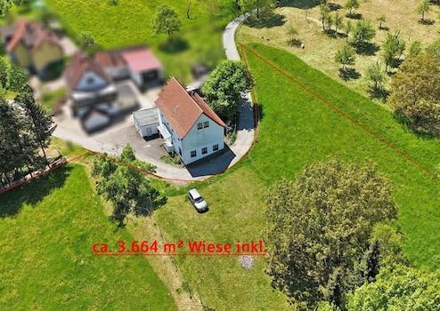 - ca. 3.664 m² große Wiese mit Feuerstelle direkt gegenüber vom Wohnhaus