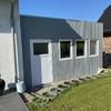 Eine geräumige Garage mit elektrischem Tor mit Fernbedienung ist vorhanden. Über eine Verbindungstür gelangt man in einen hellen Raum, den man als Werkstatt oder Fitnessraum nutzen kann und von hier aus auch in den umzäunten hinteren Garten- und Terrassenbereich. Im hinteren Gartenbereich wurde 2024 ein neuer Mähroboter angeschafft, sodass kein manuelles Rasenmähen mehr anfällt.