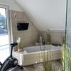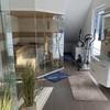 Wie es im Haus aussieht, zeigen die Bilder eindrucksvoller als eine wortreiche Beschreibung. Mit 27 qm außergewöhnlich groß ist der Bade-, Sauna- und Fitnessraum, wo man in der Wanne liegend, auch noch Fernsehen kann. Zum Schluss lässt man sich dann noch 15 Min. lang im bequemen elektrischen Massagesessel programmiert durchkneten.