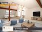 Die Innenwände sowie die Decken wurden weiß gestrichen und harmonieren toll mit dem offenen Holzgebälk. Auf den Böden finden Sie vorwiegend warmen Laminat und zeitlose, großflächige Designfliesen vor. Die sanitären Einrichtungen sind in elegantem Weiß gehalten.