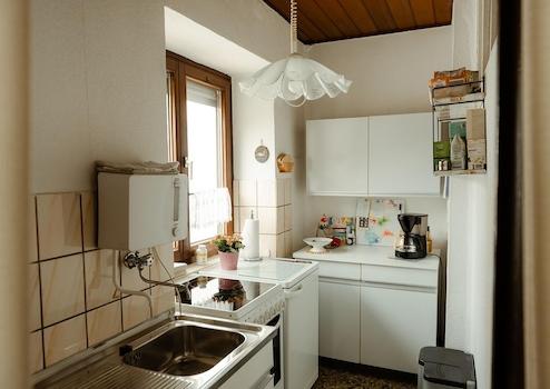 Einfachste Ausstattung aber mit Doppelverglasung, neuen Heizkörpern und neuer Gastherme. Zur Wohnfläche kommen Keller- und Dachboden hinzu.