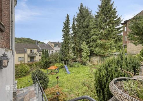 Vom Wohnzimmer aus gelangen Sie auf den Balkon, der einen herrlichen Blick auf den Garten bietet. Der Garten selbst ist ein Highlight des Hauses, ideal für Kinder zum Spielen oder für entspannte Nachmittage im Freien.