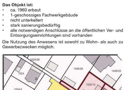 Das Gebäude einer ehem. Gaststätte kann um ein Verkaufsobjekt erweitert werden, welches die Gemeinde per Ausschreibung anbietet.