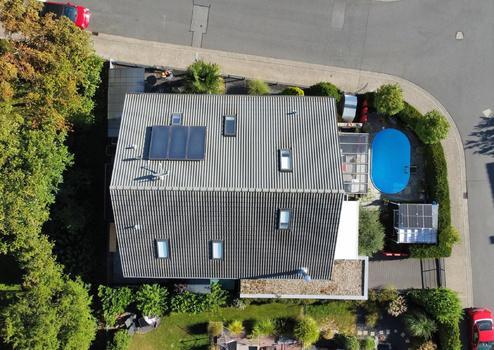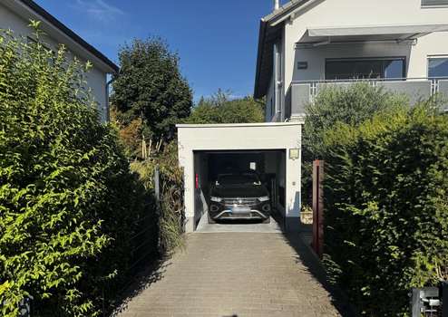 Zur Immobilie gehören eine 9m lange Garage und ein Carport. Besonders hervorzuheben ist die Unterkellerung der Garage. Zwei Solarelemente auf dem Dach unterstützen die Haustechnik energieeffizient.
