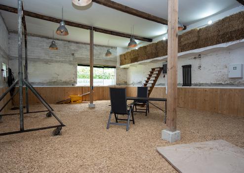 Die großzügige Halle im Stallgebäude, die bereits als Seminarraum für hundegestützte Therapie diente, bietet vielseitige Nutzungsmöglichkeiten – sei es für berufliche oder private Zwecke. Ein WC am Stall wurde vor wenigen Jahren eingebaut und komplettiert die funktionale Ausstattung.