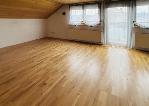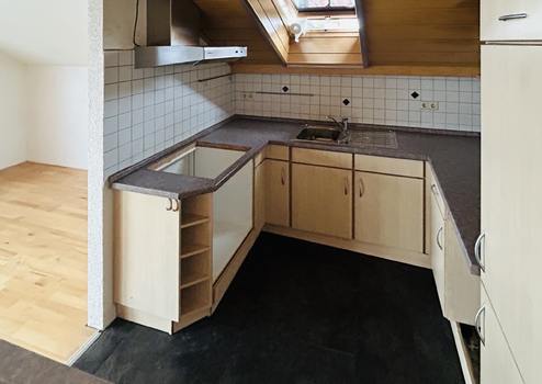 Die Dachgeschosswohnung erstreckt sich auf über etwa 80 m² und bietet drei gut geschnittene Zimmer. Mittelpunkt der Wohnung ist der großzügige und helle Wohn- und Essbereich mit integrierter Küche, von dem aus Sie direkten Zugang zum Balkon auf der Südseite haben.