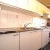 Die separate Küche ist großzügig geschnitten und verbindet praktische Funktionalität mit Stil. Helle Wandfliesen treffen auf dunkle Bodenfliesen, dazu kommen helle Einbauschränke und ein Fenster, die den Raum mit Tageslicht durchfluten und zum Kochen einladen.