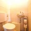 Ein weiteres Highlight ist das stilvoll ausgestattete Badezimmer. Es verfügt über raumhohe Fliesen, eine große Dusche sowie einen Waschtisch mit Unterschrank. Die harmonisch aufeinander abgestimmten Farben und die praktischen Hängeschränke schaffen sowohl Ordnung als auch ein angenehmes Ambiente. Die Toilette befindet sich separat.