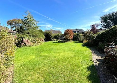 Das Erdgeschoss empfängt Sie mit einer einladenden Diele und einem Gäste-WC. Die separate Küche bietet ausreichend Platz für individuelle Kochideen. Direkt angrenzend befindet sich das Esszimmer, das in einen beheizten, vollständig abgeschlossenen Wintergarten übergeht – ein lichtdurchfluteter Raum mit Blick in den Garten, der das ganze Jahr über genutzt werden kann. Das großzügige Wohnzimmer bietet Zugang zur Terrasse in Ostausrichtung sowie zum gepflegten Garten.