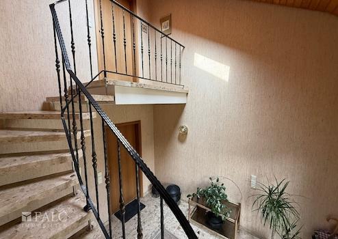 Beim Betreten dieses großzügigen Architektenhauses, das 1982 erbaut wurde, werden Sie von einem einladenden Eingangsbereich mit Naturstein-Treppenhaus empfangen. Hier wird Ihnen ein erster Eindruck von dem durchdachten Hauskonzept vermittelt, was auch nach über 40 Jahren ohne nennenswerte Änderungen am Haus seinen Charme weiter versprüht. Eine energetische Auffrischung lohnt sich bei der guten Substanz allemal!
