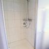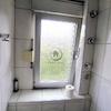 Das Tageslichtbad verfügt über ein WC, ein Waschbecken und eine Dusche. Es ist weiß gefliest.