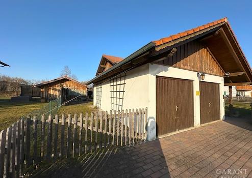 Doppelgarage, mehrere Stellplätze, Werkstatt, Holzschuppen mit drei separaten Abteilen, Gartenhaus
