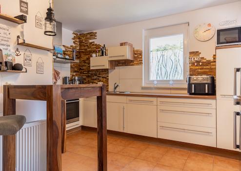 - Einbauküche mit Frühstücksplatz