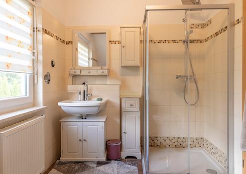 - Badezimmer mit bodengleicher Dusche