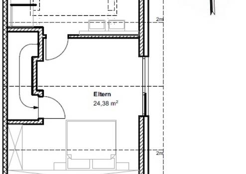 Ein echtes Highlight ist der Elternbereich im Dachgeschoss. Hier finden Sie nicht nur ein komfortables Schlafzimmer, sondern auch ein privates Duschbad. So wird das Dachgeschoss zu Ihrer persönlichen Wohlfühloase, abgetrennt von den restlichen Räumen des Hauses.