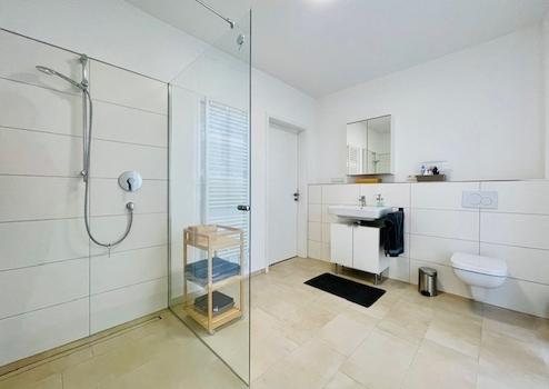 Bei der Heizung handelt es sich um eine Wärmepumpe für die Fußbodenheizung, sowie dezentraler, energiesparender Lüftungsanlage. Diese bedarfsgerechte Lüftung bietet ein rundherum gesundes und angenehmes Raumklima. Mit dieser Anlage ist nicht mehr nötig, die Fenster zu öffnen.