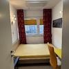 Wieder zurück im Flur hat man Zugang zum Zweitbad mit Dusche, WC und Waschbecken. Dann folgt linker Hand das große Wohnzimmer (18 m²) mit dem Austritt auf den kleinen Balkon. Und schließlich das mit einer Infrarot-Deckenheizung ausgestattete Gästezimmer (9 m²), das man auch als Arbeitszimmer nutzen kann. Ebenso wäre es möglich, Wohn- und Gästezimmer in den ursprünglichen Zustand wieder zusammenzuführen, sodass ein wirklich großer Raum (30 m²) entstünde. Die beiden letztgenannten Zimmer gehen nach Nordost und verfügen über Innenrollos.