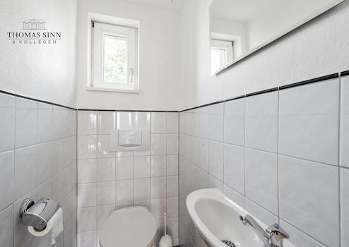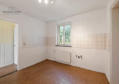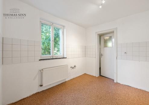 Hier befindet sich ein helles nach Osten ausgerichtetes Arbeits-/oder Gästezimmer mit Verbindungstür zum großzügigen, nach Süd-/West ausgerichteten Wohn-/Esszimmer mit wunderschönem Blick auf den Garten. Im nördlichen Bereich des Hochparterres befindet sich die separate Küche mit angrenzendem Hauswirtschaftsraum.