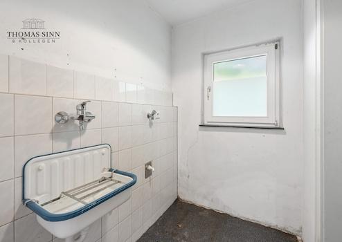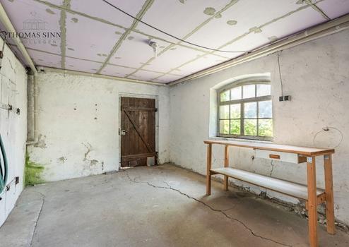 Die unterste Etage des Gebäudes liegt Dank der Hanglage zur Süd-/Westseite im Parterre. Die Nordseite befindet sich im Erdreich. Hier liegen ein Kellerraum, sowie ein Gewölbekeller mit ca. 25 Meter tiefem Brunnen. Zur offenen Süd-/Westseite sind zwei großräumige und helle Räume die sich zukünftig idealerweise z.B. als helle und freundliche Waschküche oder Hauswirtschaftsraum nutzen lassen.