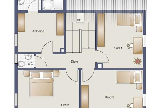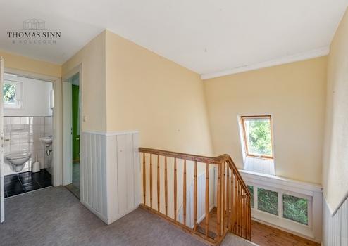 Über die charmante Massivholztreppe gelangen Sie in die Schlafräume. Im Obergeschoss befinden sich insgesamt 3 große Schlaf-/ bzw. Kinderzimmer in Ost- und Süd-/West-Ausrichtung.