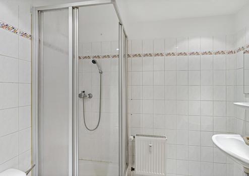 Das innenliegende Badezimmer ist mit einer Dusche ausgestattet und verfügt über einen Waschmaschinenanschluss.