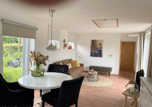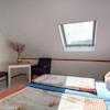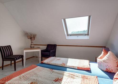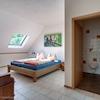 Die Gruppenunterkunft für bis zu 12 Personen ist eine geschlossene Einheit (verschlossene Türe zum Haupthaus). Im Erdgeschoss befindet sich ein großer Wohn- und Küchenbereich im ehemaligen Kuhstall, ein Schlafzimmer sowie ein Badezimmer barrierefrei. Über den Flur gelangen Sie ins Dachgeschoss mit 5 weiteren Zimmern, jeweils mit Badezimmer ausgestattet. Für den Bereich der Gruppenunterkunft wurde ein Gartenbereich abgetrennt mit großer Terrasse samt „Grünblick“.