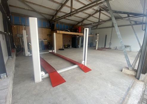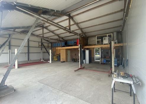 Unterteilt in Lagerfläche, Abstellraum, Werkstatt und große Werkstatt mit drei elektrischen Rolltoren