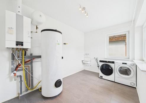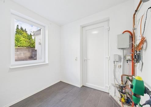Heizung: Effizientes Gas-Brennwertgerät in Verbindung mit Fußbodenheizung im gesamten Haus