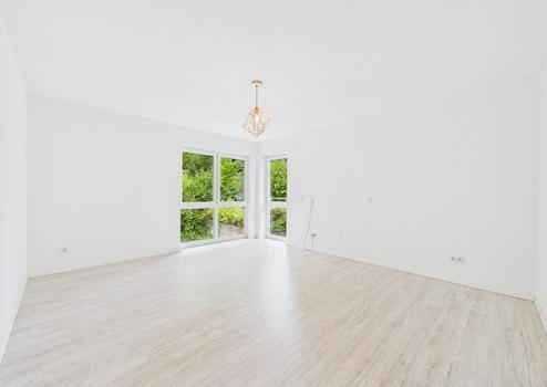 Wohnatmosphäre: Helle, offene Raumgestaltung mit klaren Linien und neutralem Farbkonzept und der Möglichkeit durch eine bereits vorhandene Vorrichtung einen Kamin nachzurüsten.