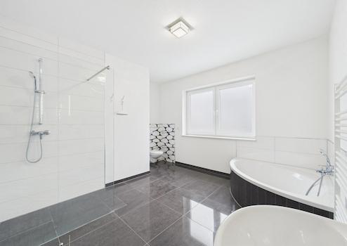 Bäder: Zeitlose Gestaltung, bodengleiche/begehbare Duschen in allen Bädern
