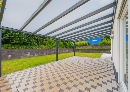 Außenbereich: Pflegeleichter Garten mit überdachter Terrasse