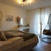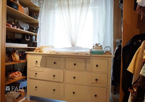 Schlafzimmer mit begehbarem Kleiderschrank und Balkonzugang