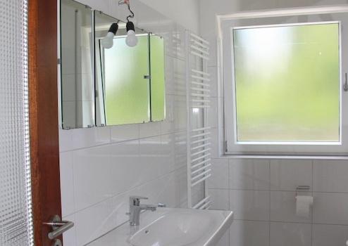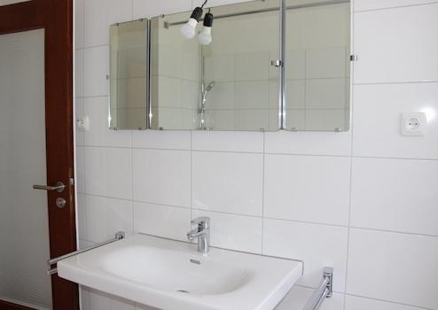 * Bad im Jahr 2020 erneuert, Bodenfliesen grau, Wandfliesen weiß