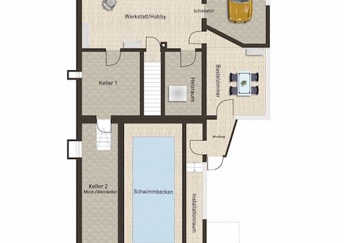 -Großes Zimmer über die ganzen Garagenstellplätze hinweg, welches beim Garagenanbau entstanden ist. Ein Traum für Geburtstagspartys!