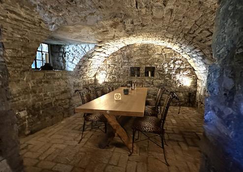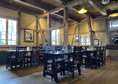 Im Erdgeschoss lädt ein großer Gastraum zu Feiern in geschlossener Gesellschaft ein. Ein besonderes Highlight ist der historische Felsenkeller mit Kappendecke, der für ein einzigartiges Ambiente für gesellige Runden sorgt. Ergänzt wird diese Etage durch die großzügige Küche, modern ausgestattete Sanitäranlagen sowie dem Sudhaus.
