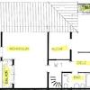 2. DG: Wohnflur; Schlafzimmer mit Balkon; Badezimmer mit Dusche und WC/Küchenzeile.
