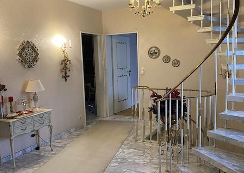 Im EG finden Sie neben dem großen und repräsentativen Eingangsbereich mit Garderobe, das großzügige Wohnzimmer mit Ausgang zur Terrasse, ein Kaminzimmer, Arbeitszimmer, Esszimmer, Küche, Bad mit Dusche und WC, Gäste WC und das Schlafzimmer mit Zugang zum Ankleidezimmer.