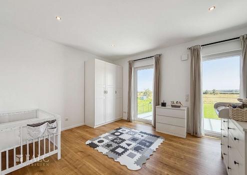 Dieses neuwertige Objekt besticht durch modernes Design, eine hochwertige Ausstattung und ein großzügiges Grundstück mit unverbaubarem Blick in die Natur. Auf rund 165 m² Wohnfläche erwartet Sie ein durchdachtes Raumkonzept mit vier Zimmern, einer modernen Einbauküche, einem stilvollen Badezimmer sowie einem Gäste-WC. Die Einbauküche ist im Kaufpreis enthalten. Besonders beeindruckend ist der knapp 50 m² große Wohn- und Essbereich mit offener Küche und Kaminofen, der das Herzstück des Hauses bildet. Der großzügige Eingangsbereich mit offener Galerie verleiht der Immobilie zusätzliche Eleganz.