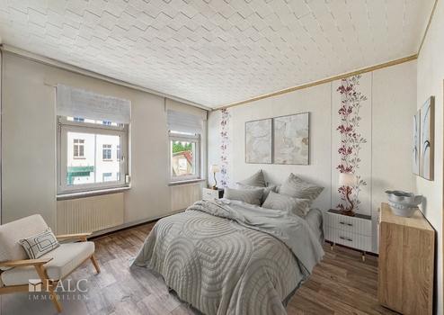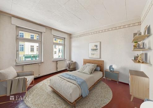 Die Möbel im Wohnzimmer, Schlafzimmer und Kinderzimmer sind digital gestaltet worden. Die Beschaffenheit der Räume ist komplett original belassen.