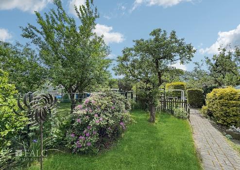 Ein echtes Highlight ist der liebevoll angelegte Garten mit seinen Obstbäumen, der zum Entspannen, Gärtnern oder Spielen einlädt. Die sonnige Terrasse eignet sich perfekt für ein Frühstück im Freien, während die überdachte Terrasse ideale Voraussetzung für gemütliche Grillabende mit Freunden und Familie schafft. Wer sich den Traum vom eigenen Pool erfüllen möchte, findet im Garten ausreichend Platz dafür. Ergänzt wird das Angebot durch zwei praktische Schuppen auf dem Grundstück, die sich ideal als Fahrradunterstand, Werkstatt oder für die Unterbringung der Gartengeräte nutzen lässt.