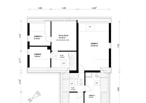 * Obergeschoss: Hier befinden sich drei weitere Zimmer.