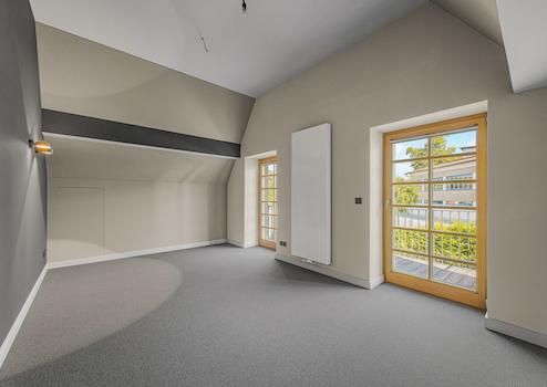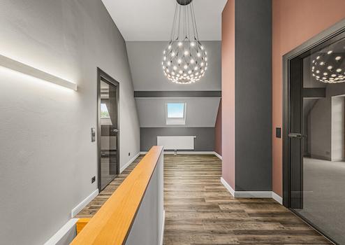 Im Obergeschoss befinden sich zwei Schlafzimmer sowie ein ca. 6 m² großer Balkon in östlicher Ausrichtung. Dank einer vollständigen Netzwerkverkabelung eignet sich der Flur hervorragend als Arbeitsplatz.