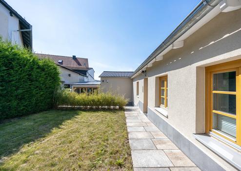 Aufgeteilt auf sieben Zimmer ermöglicht das Haus einen großen Spielraum an Entfaltungsmöglichkeiten und bietet ausreichend Platz für die ganze Familie. Der Grundriss verteilt sich im Erdgeschoss auf fünf Zimmer mit großem Wohn- & Essbereich, welcher Zugang auf die Terrasse gewährt. Zahlreiche Holzfenster mit Dreifachverglasung fluten die Räumlichkeiten mit Tageslicht und dienen zudem einer optimalen Isolierung. Hochwertige Türzargen aus Aluminium mit Glaselementen trennen die Räume ab und sorgen zudem für ein modernes Erscheinungsbild. Neben dem mit Designe-Elementen ausgestattete Badezimmer wäre ein zusätzlicher der Einbau einer Dusche realisierbar.