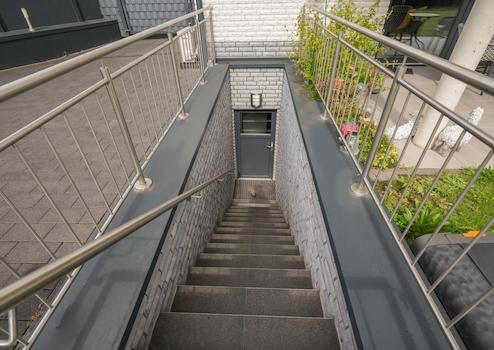 - Maßangepasste Granitfliesen im Treppenhaus bis in den Spitzboden