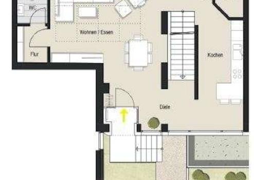 Die Bestandsimmobilie im ruhigen Innenhof wird neu ausgebaut. Hier entstehen 2 Maisonette Wohnungen mit eigenen Eingängen – quasi – wohnen wie in einem eigenen Haus über 2 Etagen mit großzügigen überdachten Dachterrassen. Die Einheit 15 mit ca. 102 m² schafft im Erdgeschoss eine Wohnatmosphäre mit viel Licht. Gestalten Sie diesen großzügigen offenen Raum mit Ihrer trendigen Wohnlandschaft einem schicken Küchenbereich und einem Essplatz. Abgerundet wird diese Etage mit einer Abstellkammer unmittelbar im Bereich der Küche und einem Gäste-WC sowie einem Flur. Über eine innenliegende Treppe erreichen Sie die Terrasse mit ca. 12 m², die im Sommer einen zusätzlichen Raum schafft für Ihre Loungegruppe und Ihre Outdoorküche. Das Schlafzimmer im Untergeschoss mit einem Bad en Suite und viel Platz für einen Ankleidebereich mit zusätzlicher Abstellfläche rundet diese Wohneinheit ab.