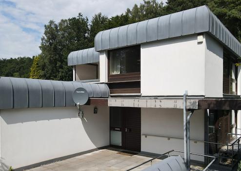 Schon von außen beeindruckt das Gebäude durch seine klare, moderne Architektur. Die markante Attika-Zinkverkleidung in Stehfalztechnik verleiht dem Baukörper eine elegante top modere Linienführung, die sich harmonisch in die großzügige Gartenlandschaft einfügt. Durch die ineinandergreifenden Baukörper entstehen spannende Perspektiven und Raumwirkungen, die diesem Objekt einen unverwechselbaren Charakter geben. Das Herzstück des Hauses bildet die größere Wohneinheit, die durch lichtdurchflutete Räume, große Fensterfronten, hohe Decken und ein offenes Wohnkonzept begeistert. Der vollunterkellerte Bereich bietet dank seiner Deckenhöhe vielseitige Nutzungsmöglichkeiten – ob als Hobbyraum, Atelier, Fitnessbereich oder zusätzliche Abstellfläche.