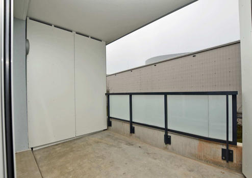 Auf der West-Loggia können Sie zu jeder Jahreszeit geschützt draussen sitzen, die frische Luft genießen und in den Garten der Wohnanlage blicken.