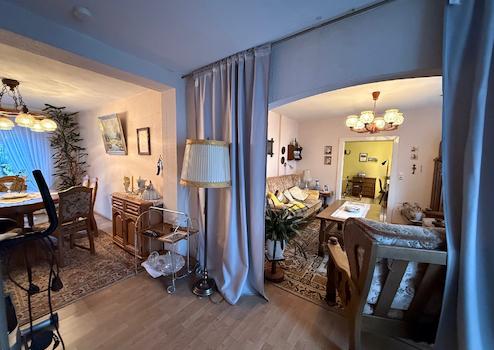 Im Erdgeschoss gelangt man vom Hausflur aus in das ca. 2019 gemachte Badezimmer mit Dusche und Waschmaschinenanschluss und in den großzügigen Wohn-Essbereich mit angrenzender Küche.